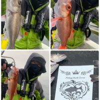 本日のアカムツ便開始から中盤は無〜〜〜😂中盤からラストまでポツリポツリ!全員安打には至りませんでしたがアラに本命とそれなりに釣れたので良き良き🙏本日はありがとうございました☆